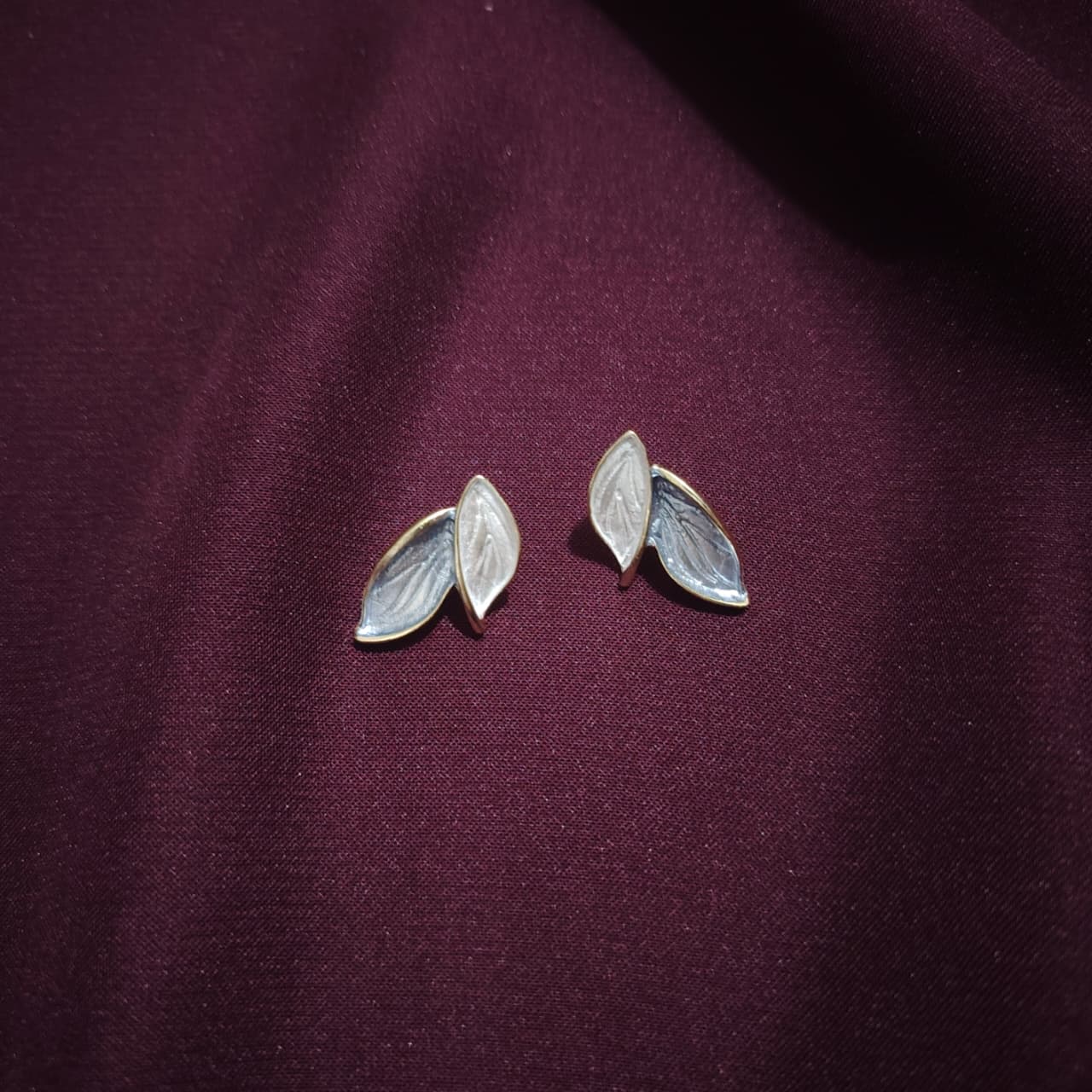 Inspired by nature, these earrings showcase delicately carved dual-tone leaves framed in gold. Their soft, organic shape brings a refined yet effortless charm to your style.
