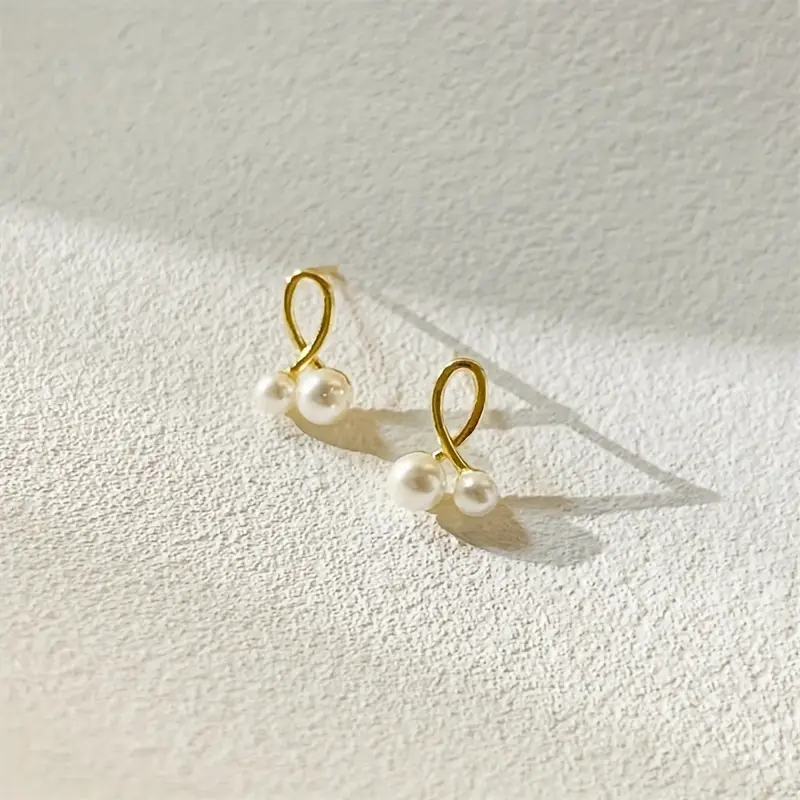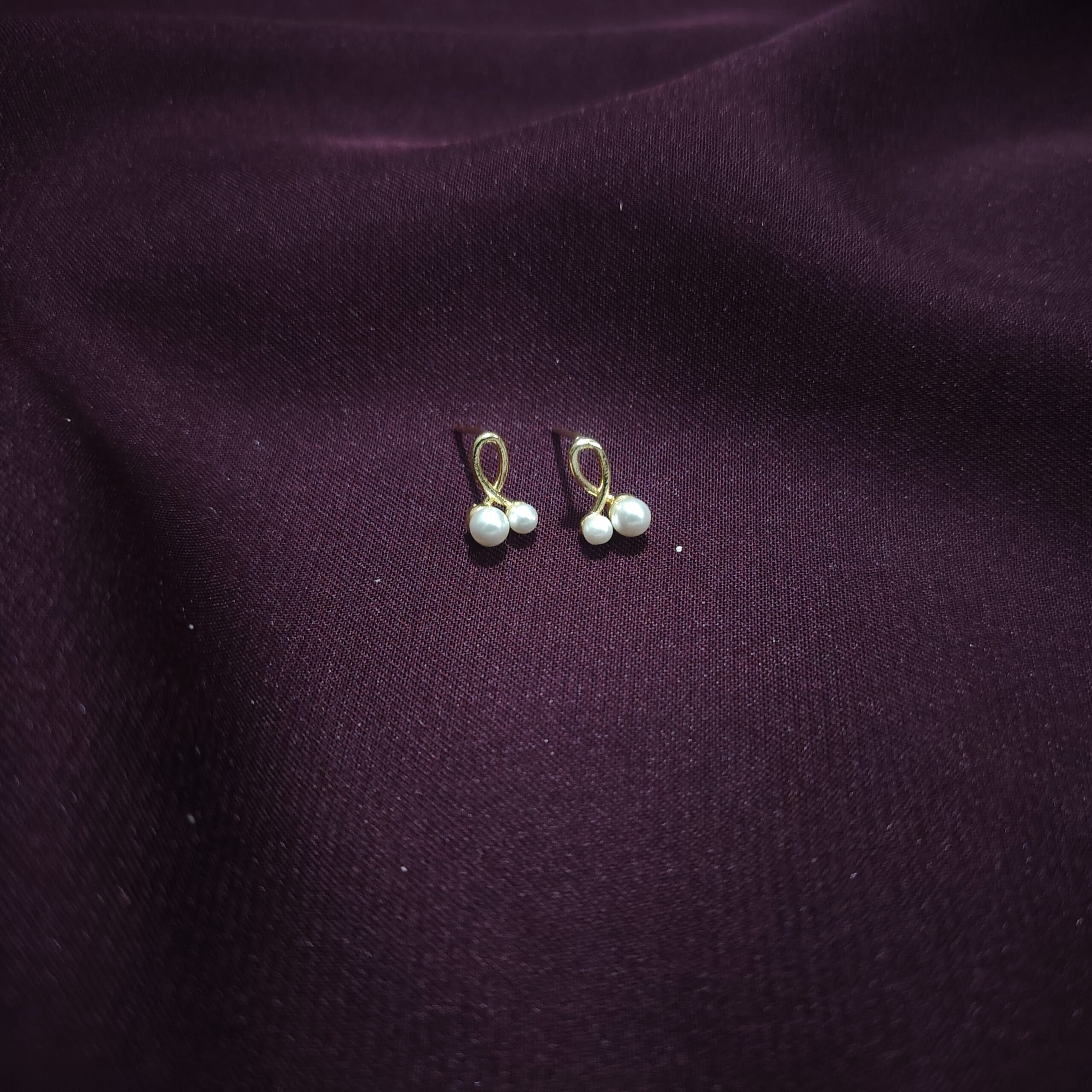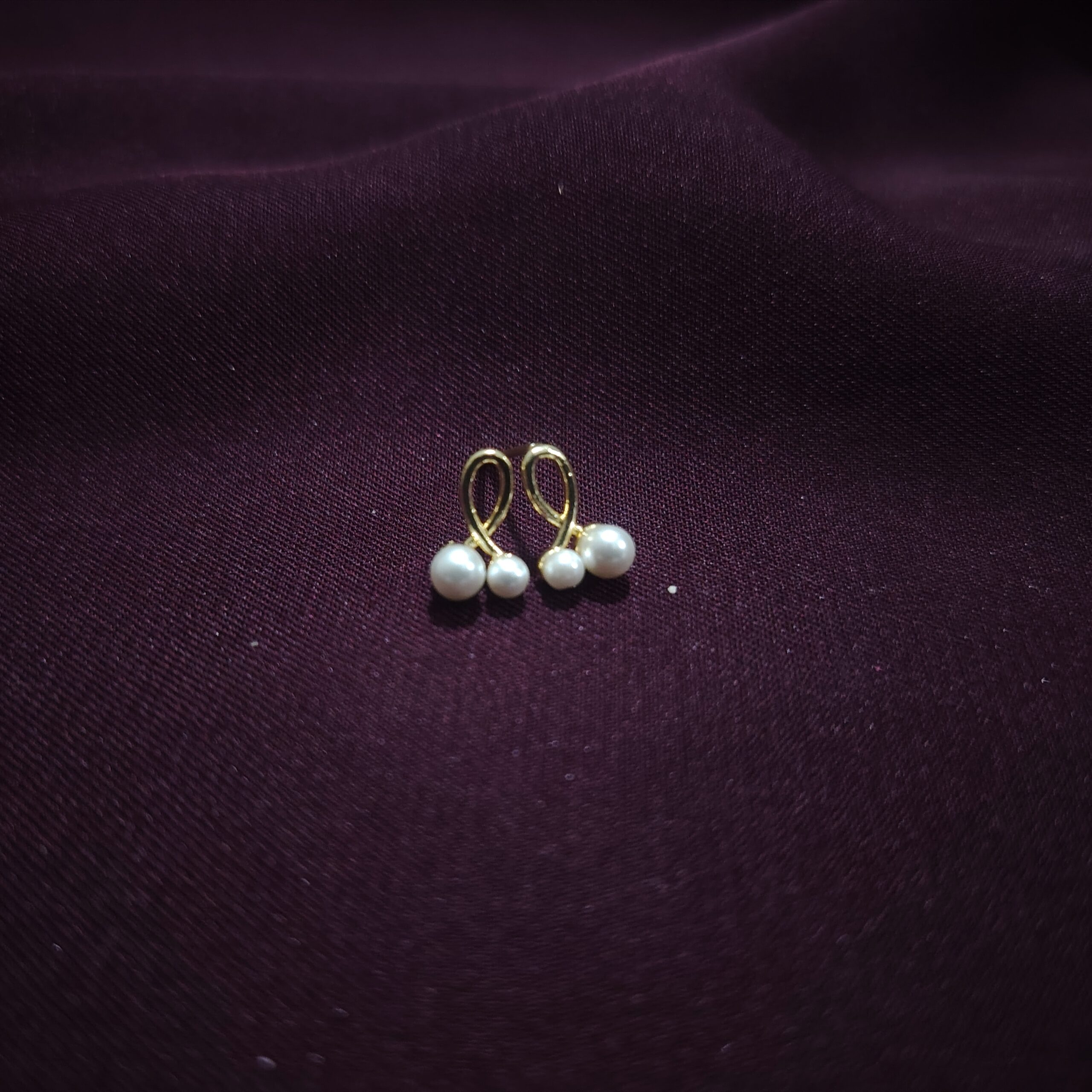 Delicate and graceful, these gold loop studs are adorned with three petite pearls for a soft, feminine charm. A classic piece that adds a gentle touch of sophistication to any outfit.