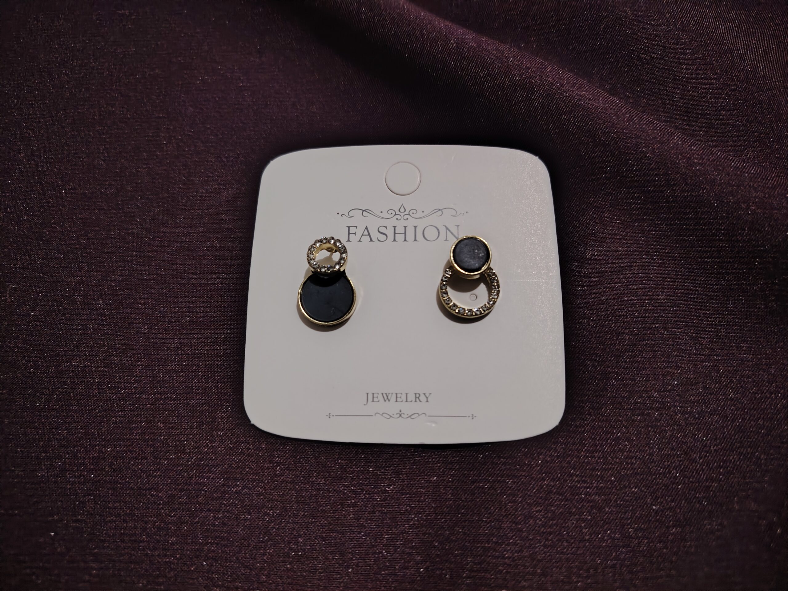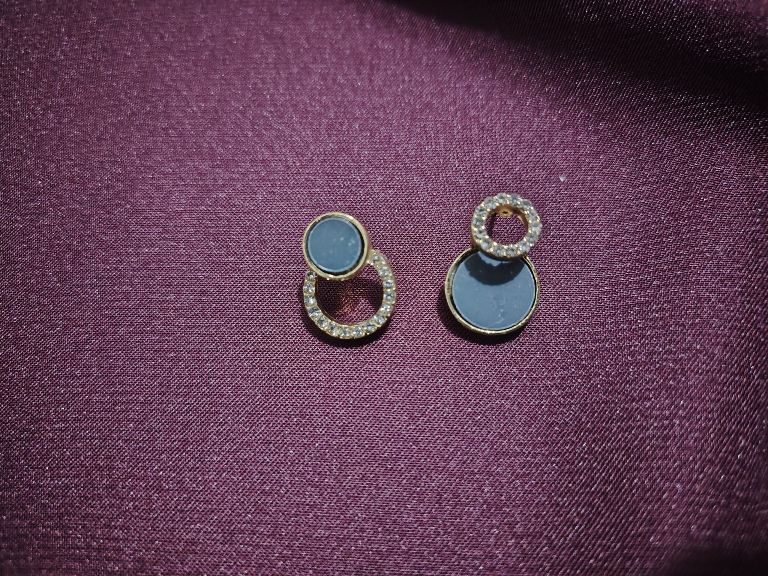Modern and striking, these dual-circle studs pair glossy black accents with a sparkling crystal ring. A chic blend of minimal design and subtle shine—perfect for elevating everyday looks.