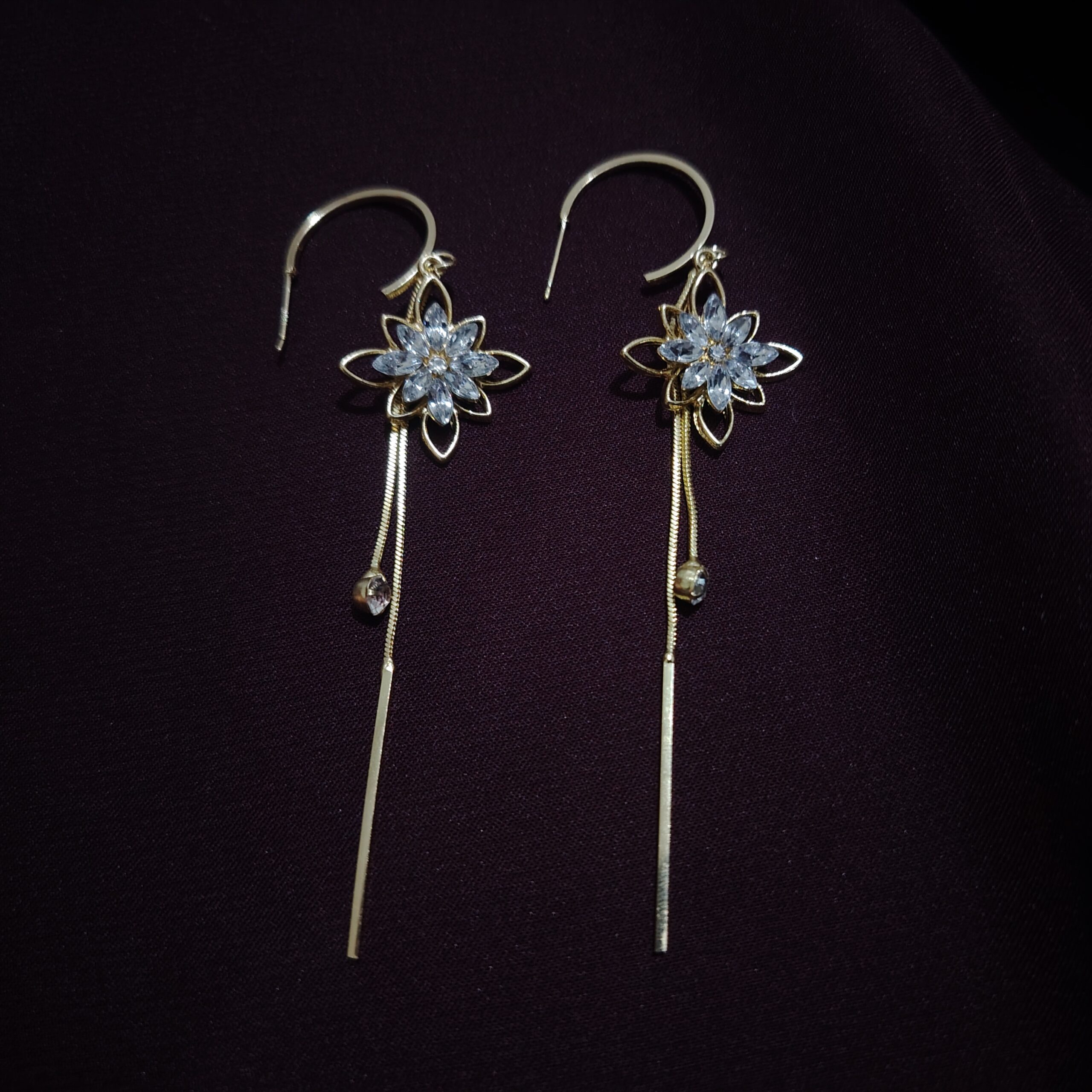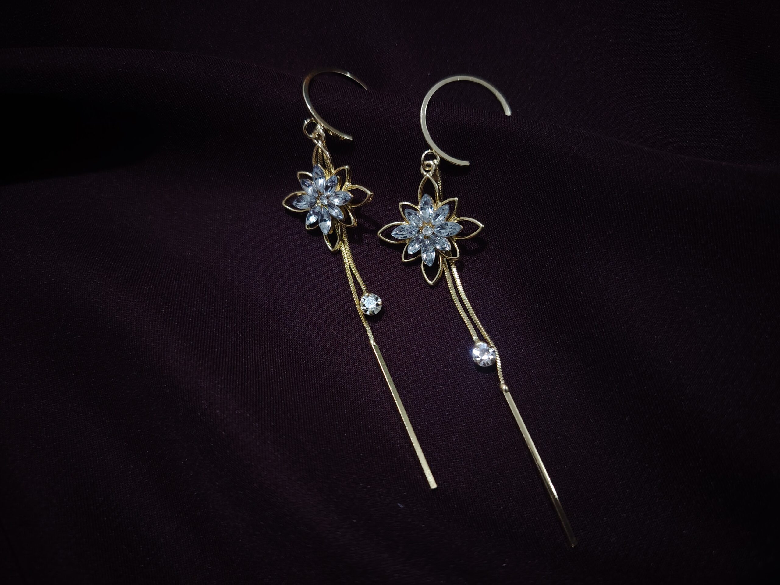 Delicate and dreamy, these floral threader earrings showcase a radiant crystal flower paired with fine gold chains for graceful movement. A lightweight, feminine design that brings effortless charm to your style.